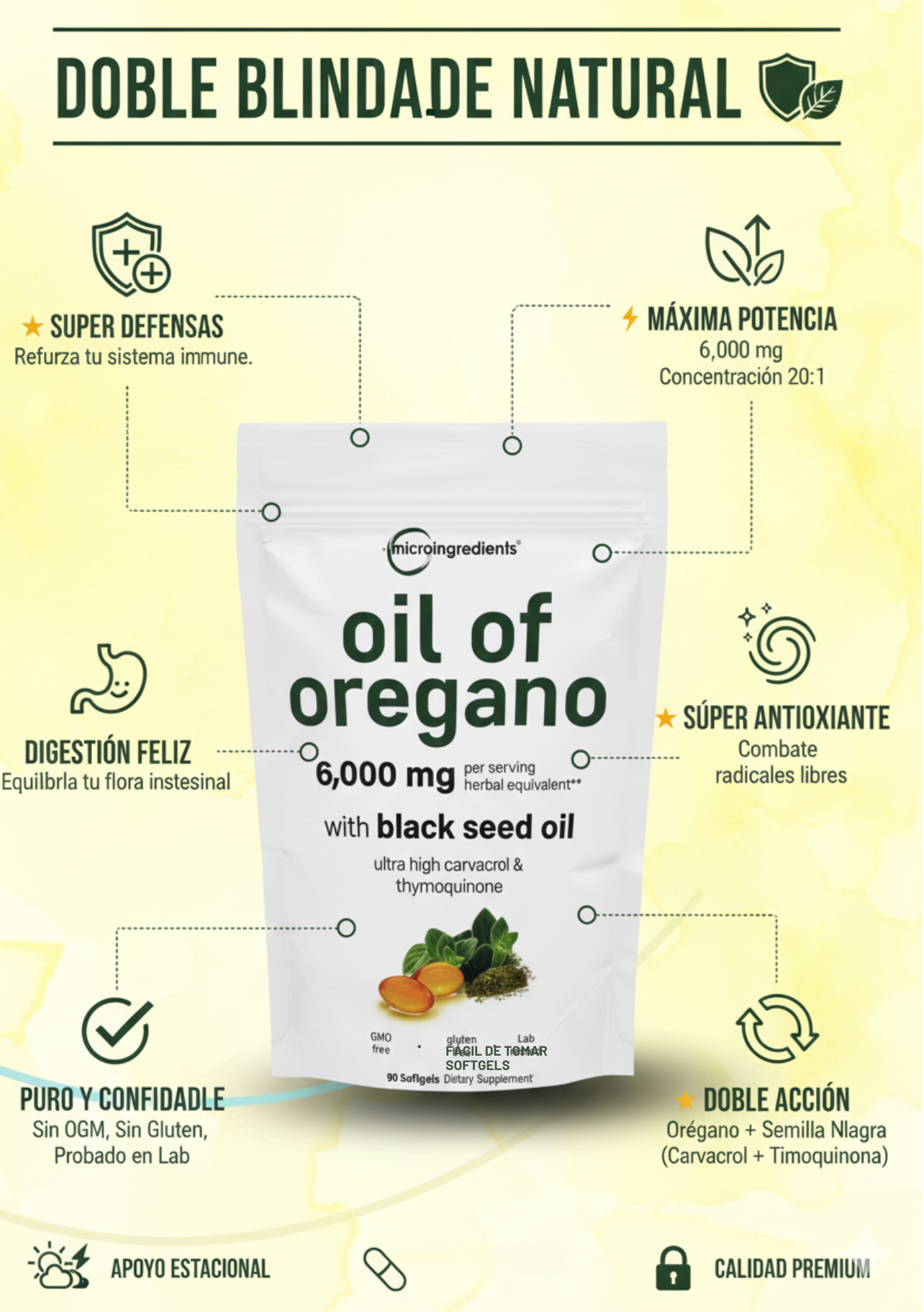 2️⃣ Doble ingrediente premium (orégano + black seed oil) → muchos solo traen uno.