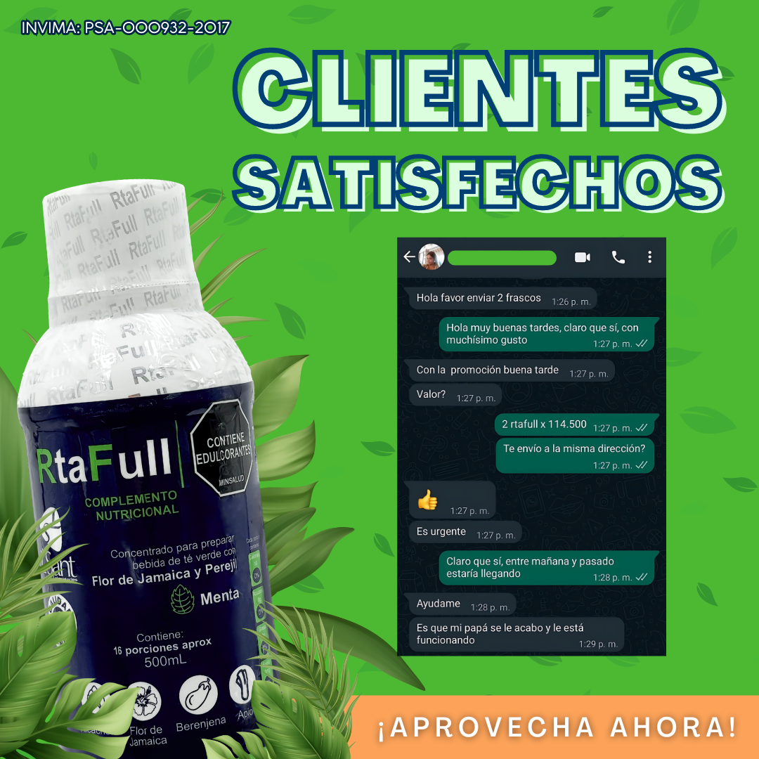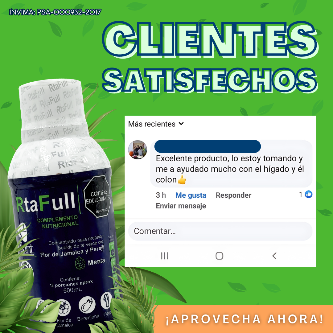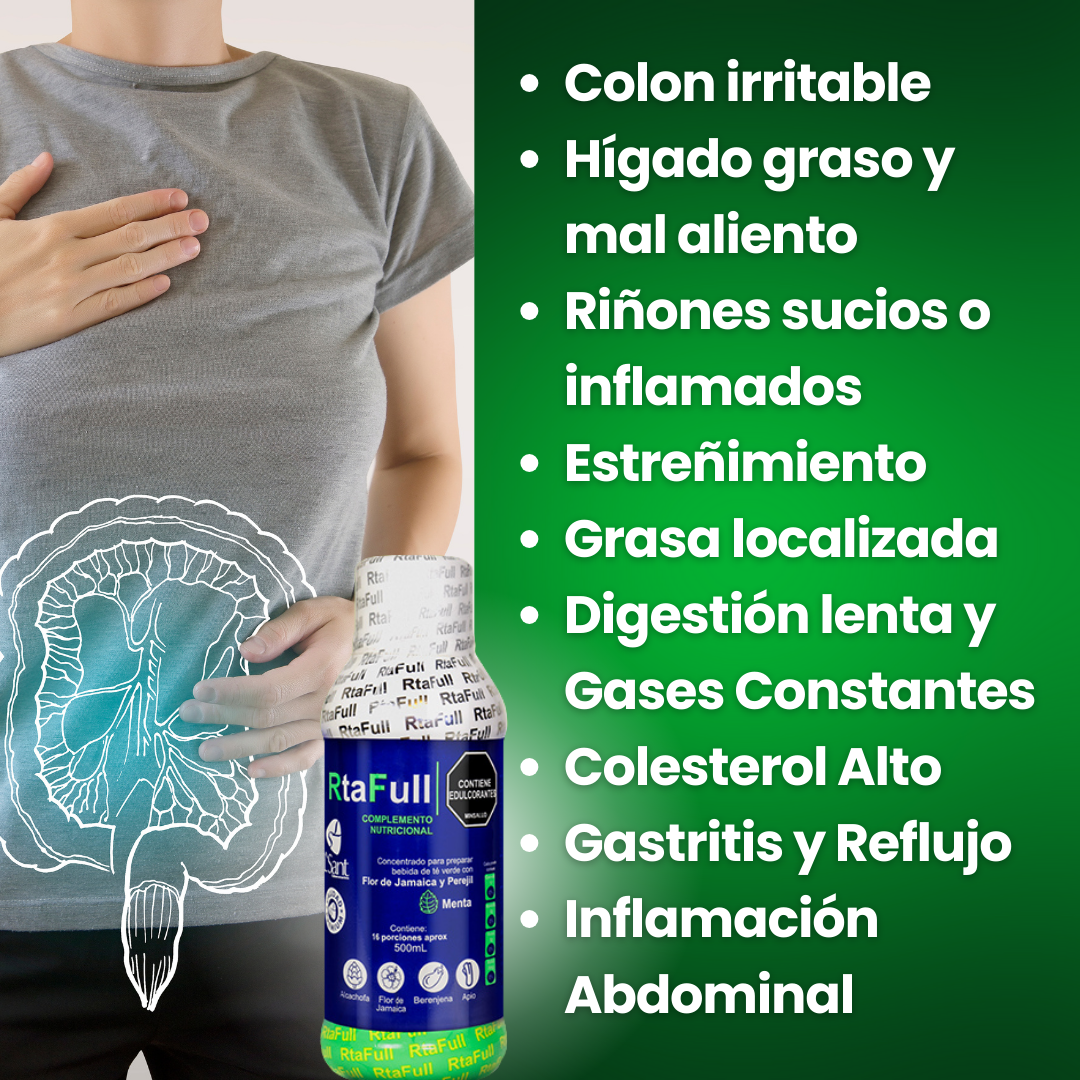 No necesitas dejar definitivamente tus alimentos favoritos para corregir los problemas digestivos; si incluyes Rta Full para consumir diariamente, ¡notarás cambios favorables en tu organismo en corto tiempo!