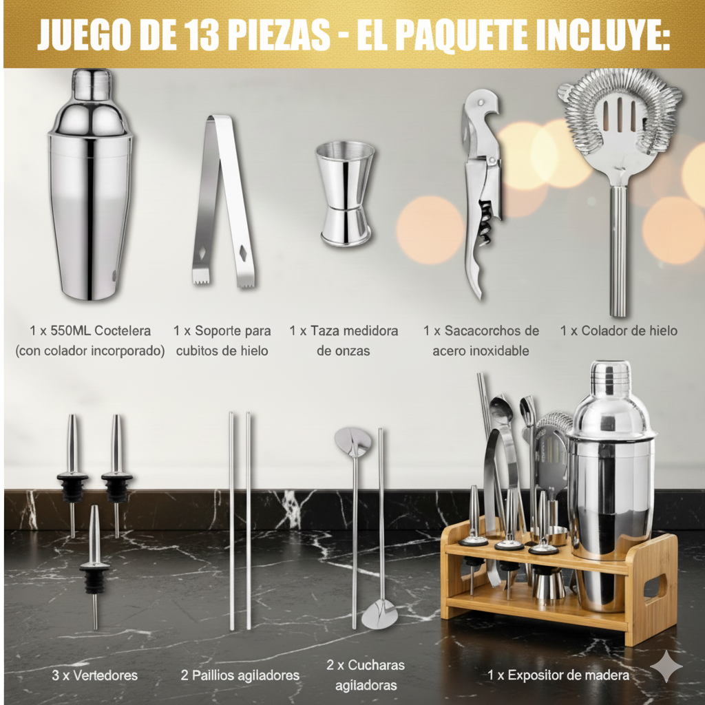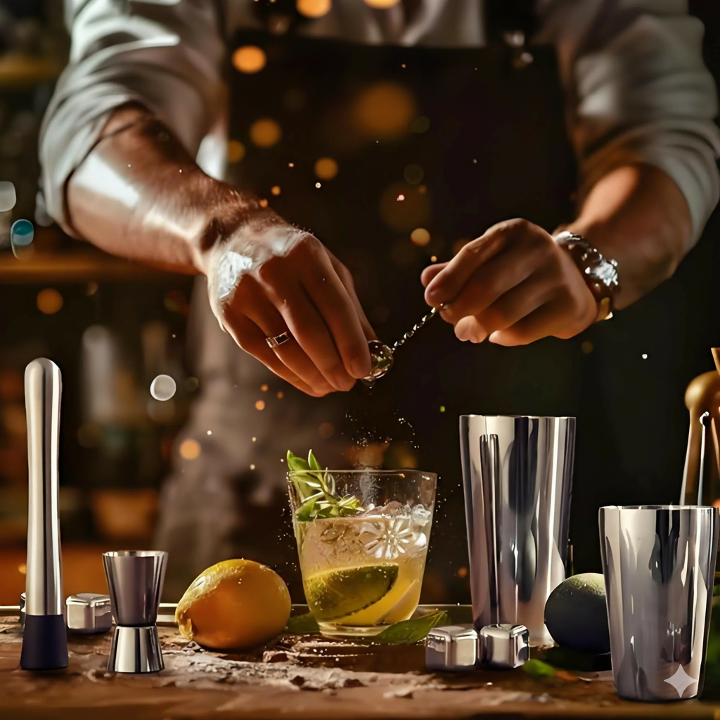 Toca los puntos para ver cada herramienta y descubrir cómo transforma tu experiencia al preparar cócteles.
